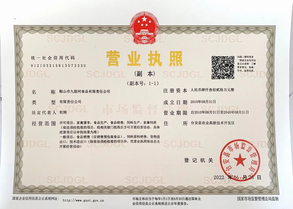 1997年丨九股河誕生于遼寧臺安,成立臺安縣九股河農業(yè)發(fā)展有限公司2003年丨九股河走進錦州市,在凌海成立凌海九股河食品有限公司2008年丨成立凌海九股河飼料有限公司2010年丨九股河與禾豐合作后,成立鞍山市九股河食品有限責任公司,從此,禾豐九股河走進了高速發(fā)展之路2011年丨繼續(xù)在遼西闊步,成立葫蘆島九股河食品有限公司同年,臺安縣九股河農業(yè)發(fā)展有限公司養(yǎng)殖部成立,按下規(guī)?;\養(yǎng)小區(qū)建設的快進鍵2